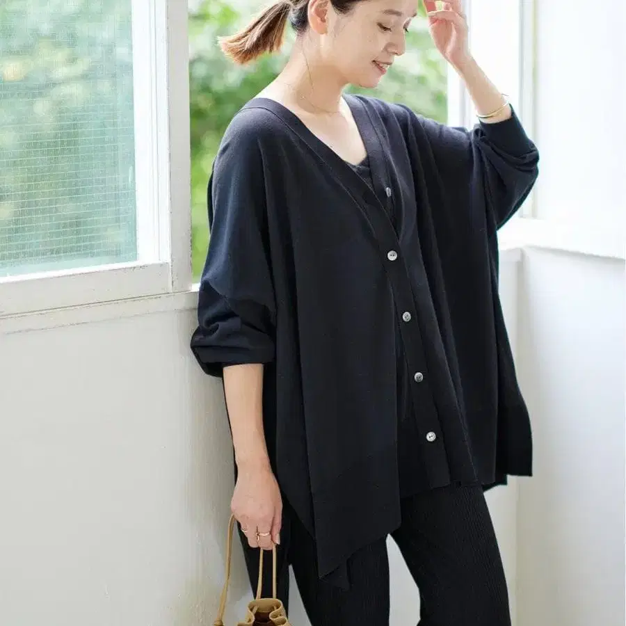 저널 스탠다드 HT 코튼 판초 가디건 블랙