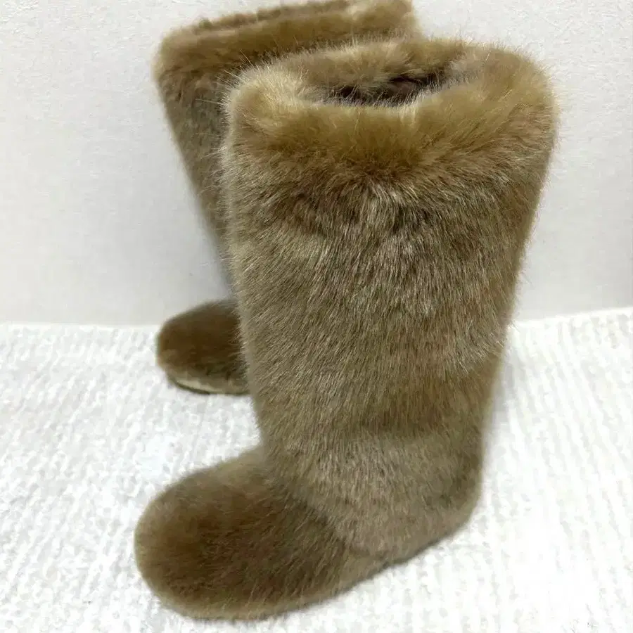 미사용급 ZARA 22cm 브라운 퍼 롱 부츠 스키 컬렉션