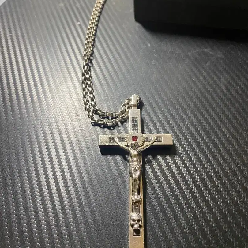 고딕 스타일의 실버 십자가 펜던트, 빨간색 보석과 스컬 장식. - 디자인: 십자가 펜던트 - 소재: 금속제 - 장식: 빨간색 보석과 스컬 디자인 - 체인 타입: 링크 체인 - 색상: 실버 - 스타일: 고딕풍 - 사이즈: 약 10cm 십자가 방문해 주셔서 감사합니다.