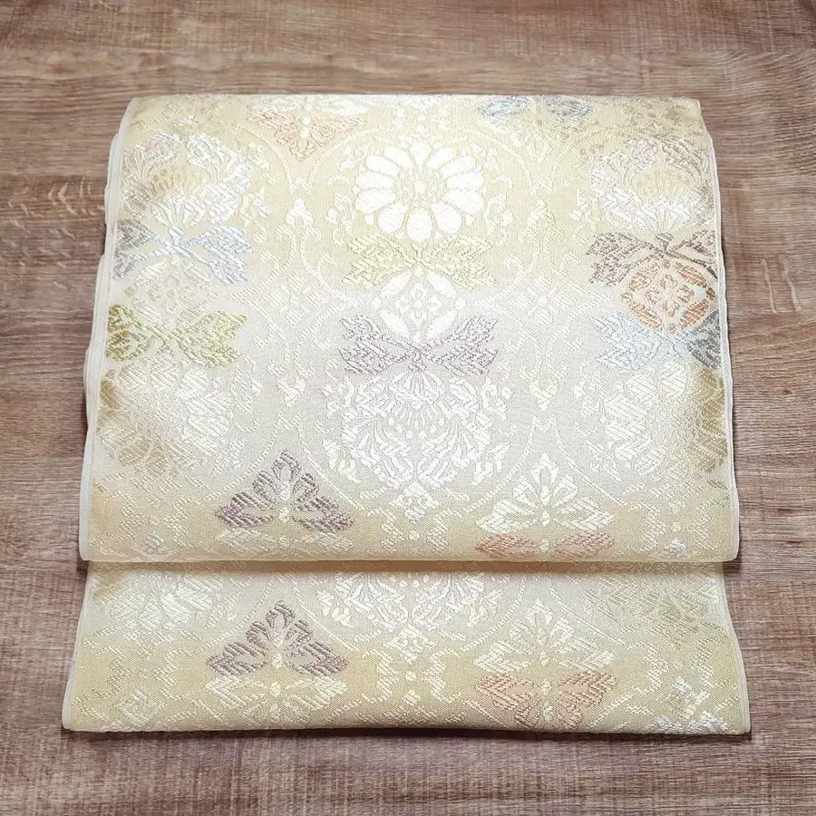 • 나고야 오비 앤티크 당사자 무늬 세로줄 꽃 무늬 순수 실크 기모노