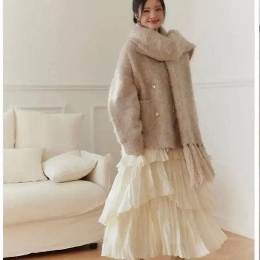 새상품 폴로 오버 사이즈 가디건 머플러 세트