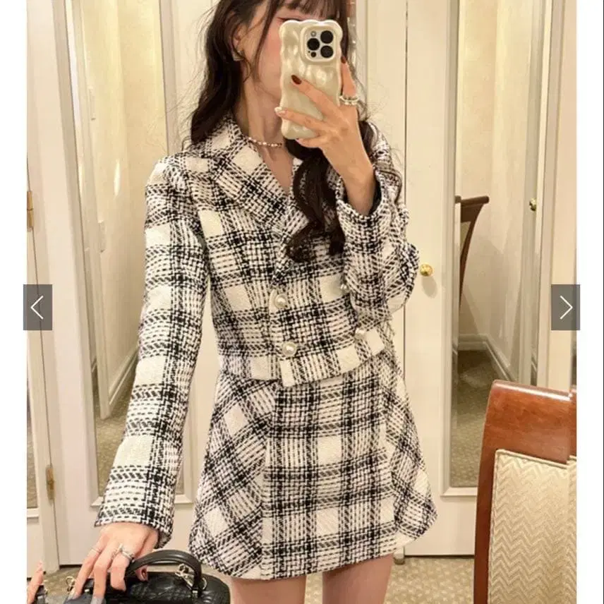 GRL 숏 기장 자켓 & 미니 스커트 체크 무늬 트위드 셋업