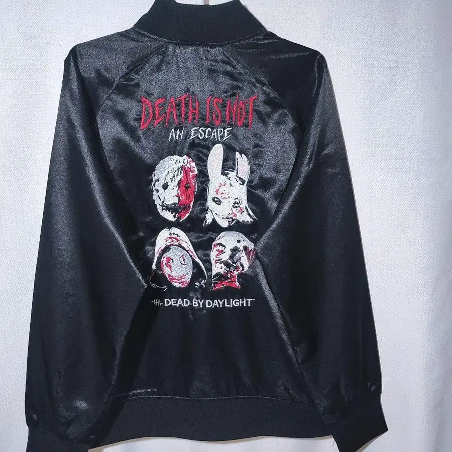 Behaviour Interactive(비헤이비어 인터랙티브)가 제작한 서바이벌 호러 게임 [ Dead by Daylight (데드 바이 데이라이트) ]의 킬러 4명의 얼굴이 부제와 함께 등에 자수된 스카잔. 킬러로는 트래퍼, 헌트리스, 리전, 간호사가 있으며, 왼쪽 가슴의 흑단 메멘토 모리 자수와 오른쪽 가슴의 데드 바이 데이라이트 로고 자수가 디자인되었습니다. 또한 빨간색 안감도 특징이며, 광택과 부드러운 촉감이 팬들에게는 놓칠 수 없는 아이템입니다.