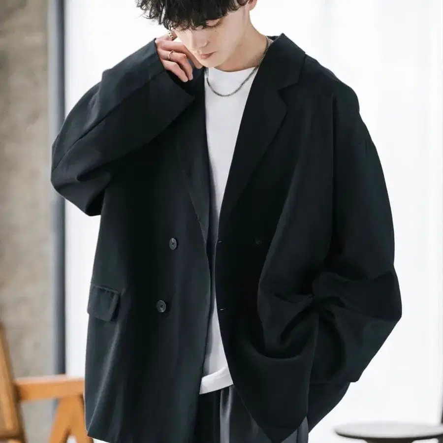 넉넉한 사이즈감에, 더블 브레스트 사양을 결합한 디자인.