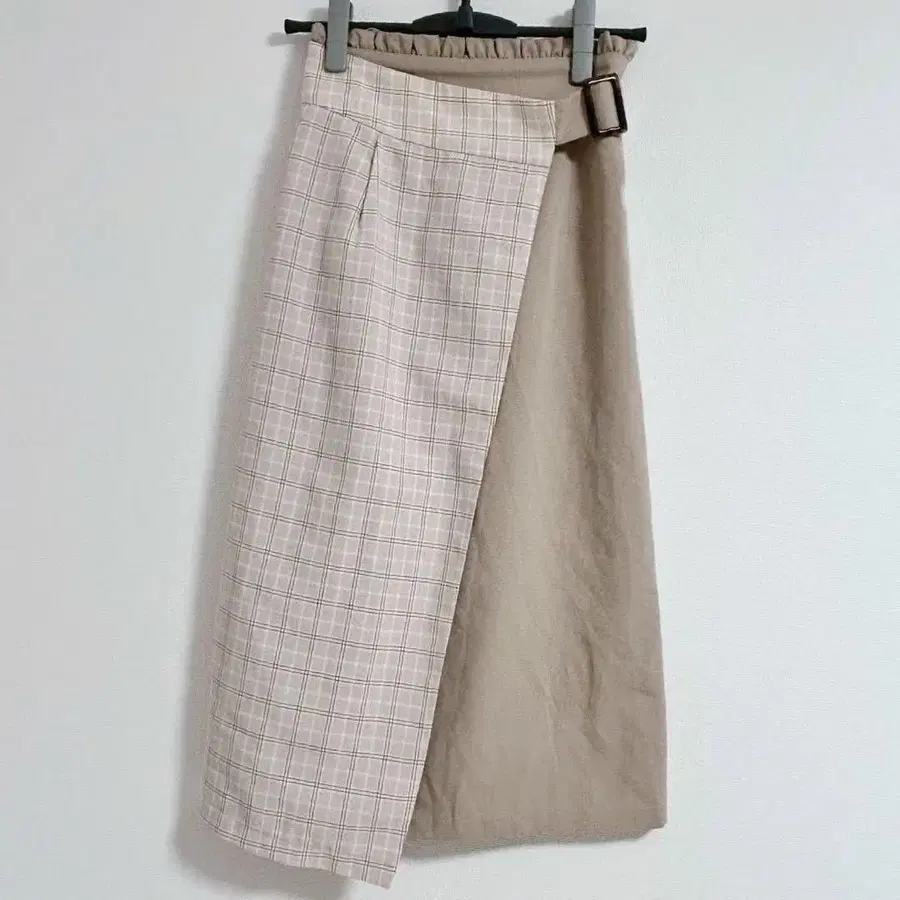 체크 무늬와 무지의 콤비네이션이 특징인 롱 스커트, 앞 슬릿이 있어 활동성도 겸비했습니다.
