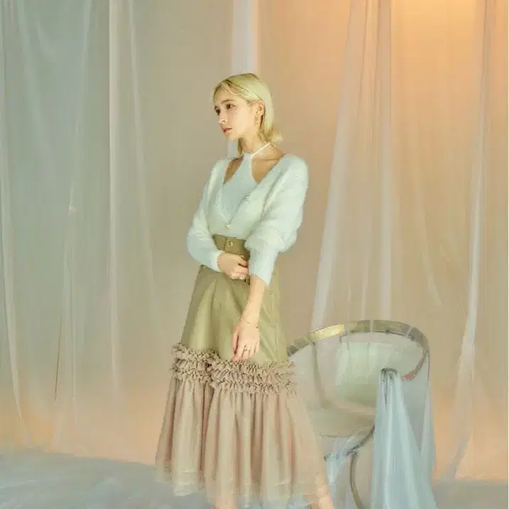 crayme 클레이미 가죽 샤샤 스커트(khaki)