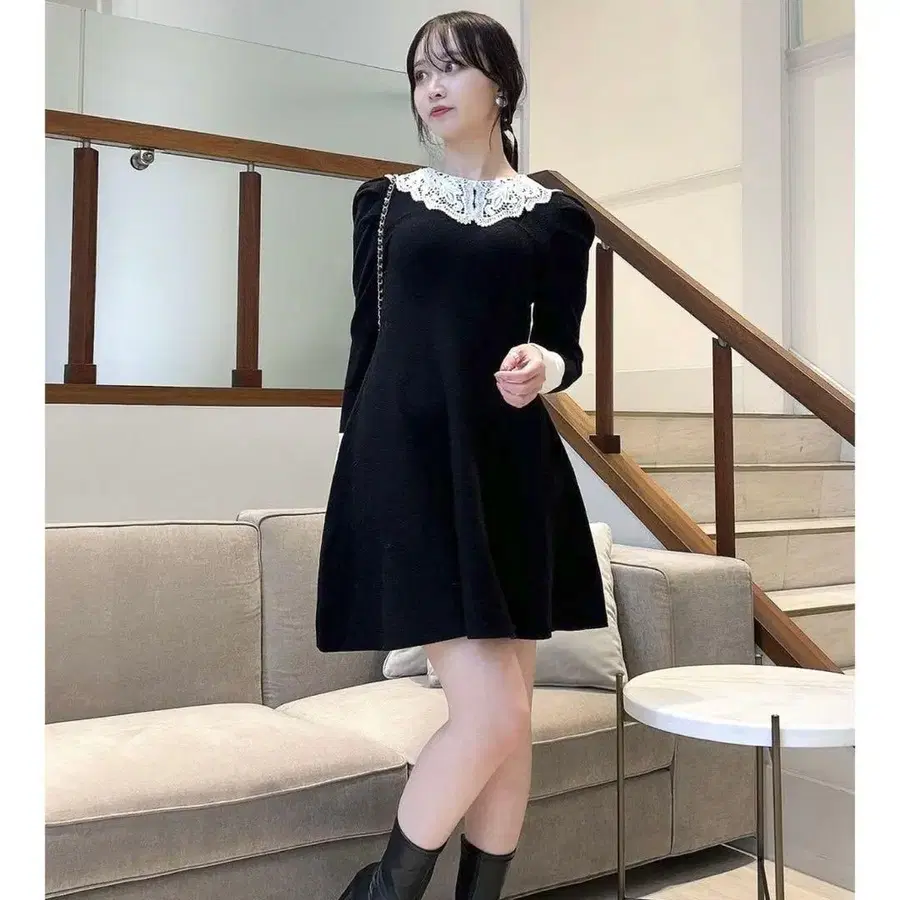 dazzlin 레이스 스칼라 플레어 원피스 블랙