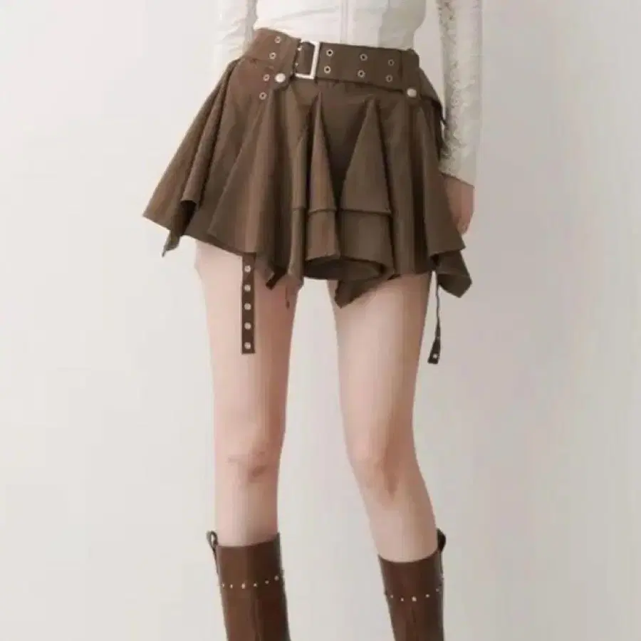 jouetie 아지메 헴 벨티드 미니 스커트 브라운