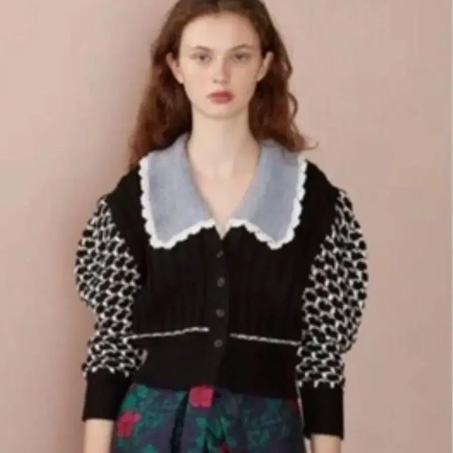 FURFUR 퍼프 슬리브 크로셰 편직 카라 부착 가디건