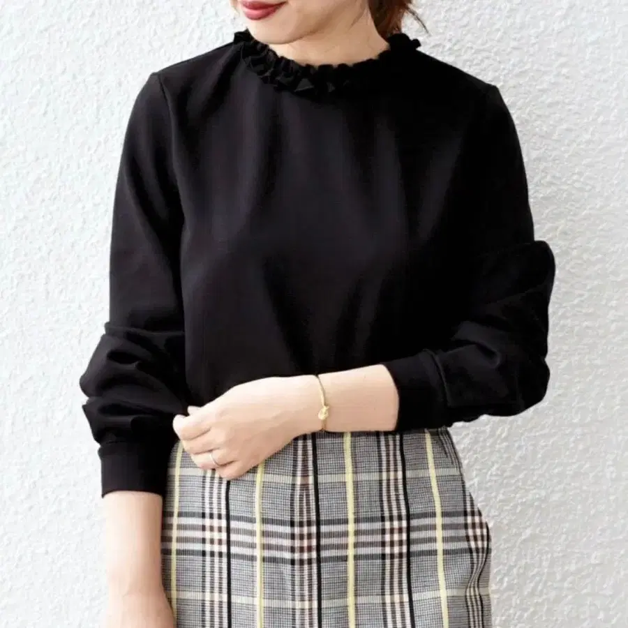 쉽스 프릴 칼라 티셔츠 블랙 FREE