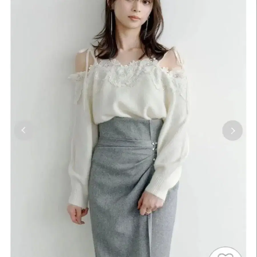[ 오프숄더 니트에 럭셔리한 레이스를 도킹하여 세련됨을 더했습니다 ]