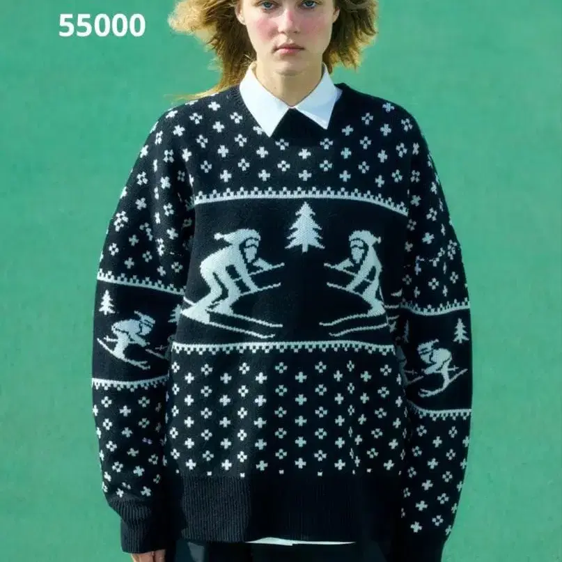 스키 패턴 블랙 니트 스웨터 M 산타클로스 풀오버 니트