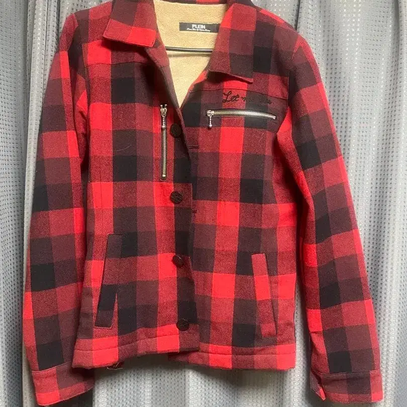 빨간색과 블랙 체크 무늬 플리스 자켓 punk 펑크