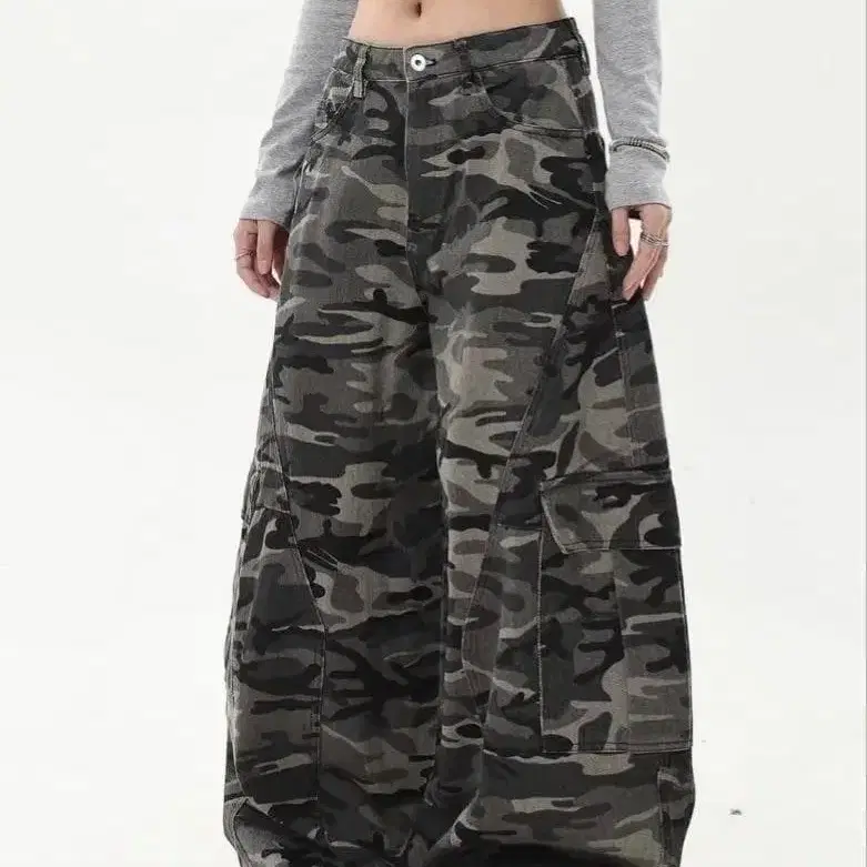 XL 사이즈 카모플라쥬 커브 팬츠 배럴 레그 밀리터리 y2k 와이드 핏