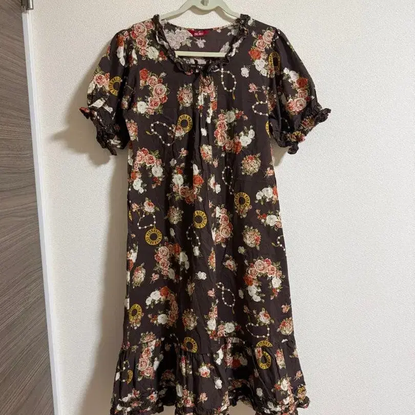 새상품급 핑크하우스 짙은 갈색 로제트 리 슬로우 원피스