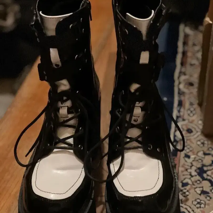 요스케 YOSUKE 레이스업 통굽 부츠 모노크롬 벨트 롱 부츠