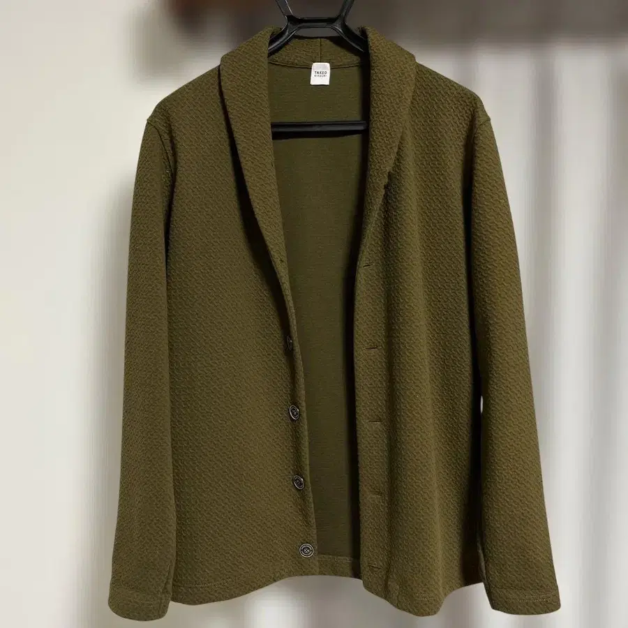 TAKEO KIKUCHI 올리브색 노카라 버튼 자켓