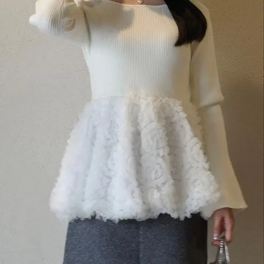 [ JUNOAH ] 튤 페플럼 도킹 니트