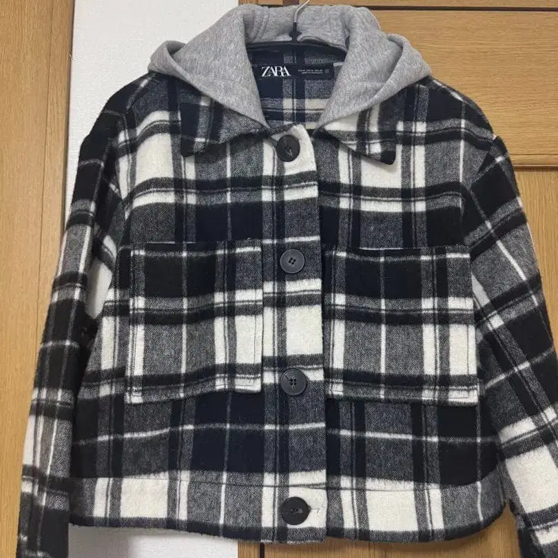 ZARA 체크 무늬 후드 부착 크롭 자켓 M