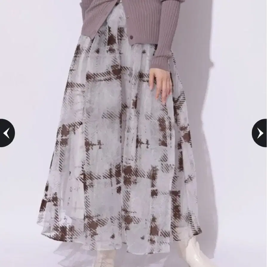 마이 스트라다 그라데 체크 플로키 스커트 핑크 베이지 S