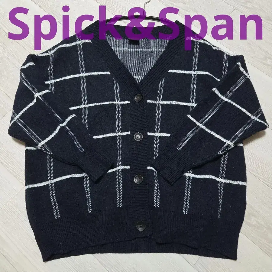 익명 배송 스픽 앤 스팬 네이비 체크 무늬 니트 가디건