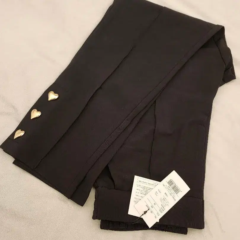 포켓 부착 밑단 하트 버튼 장식 테이퍼드 팬츠