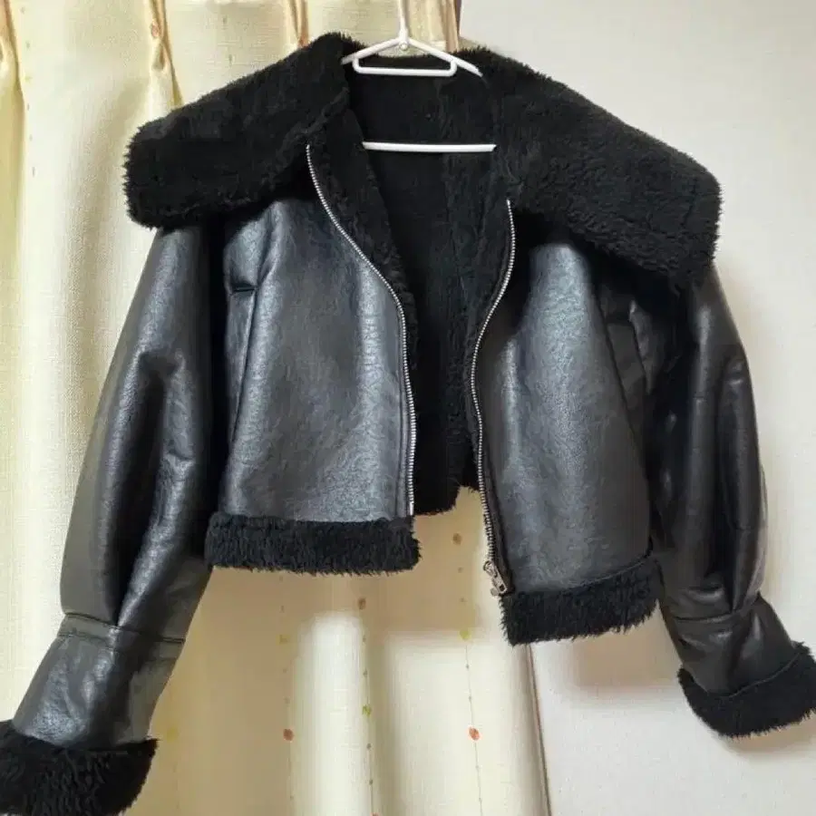보아 부착 가죽 자켓 F 사이즈 블랙