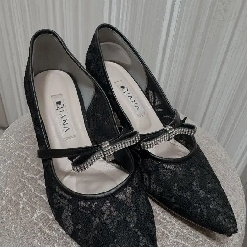DIANA 블랙 레이스 스틸레토 펌프스 21.5