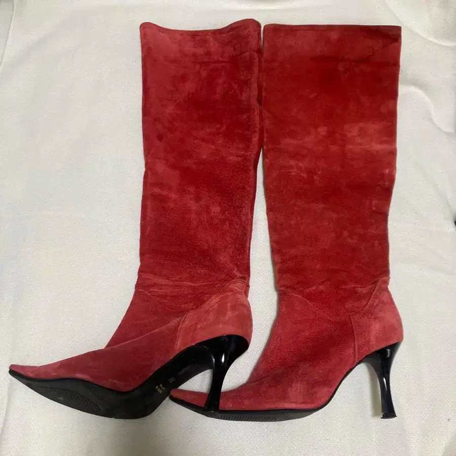 자동 번역되었어요. 원문보기빨간색 스웨이드 하이힐 스틸레토 롱 부츠.