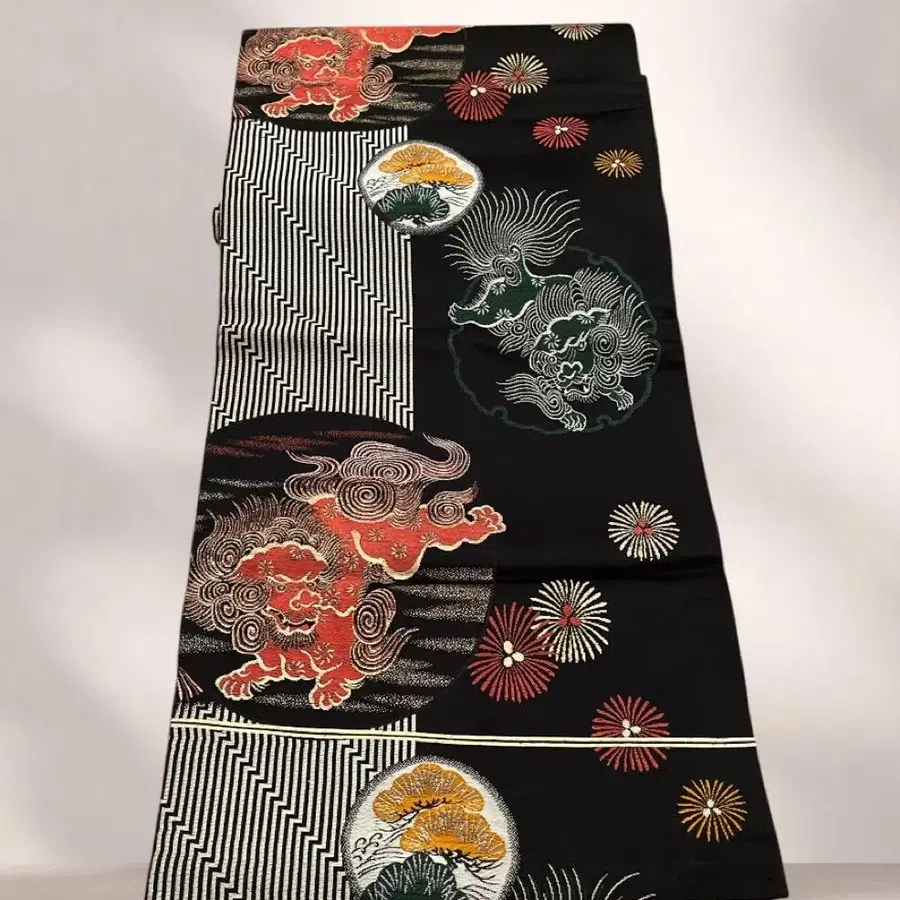 나고야 오비 앤티크 당사자 무늬 세로줄 꽃 무늬 순수 실크 기모노