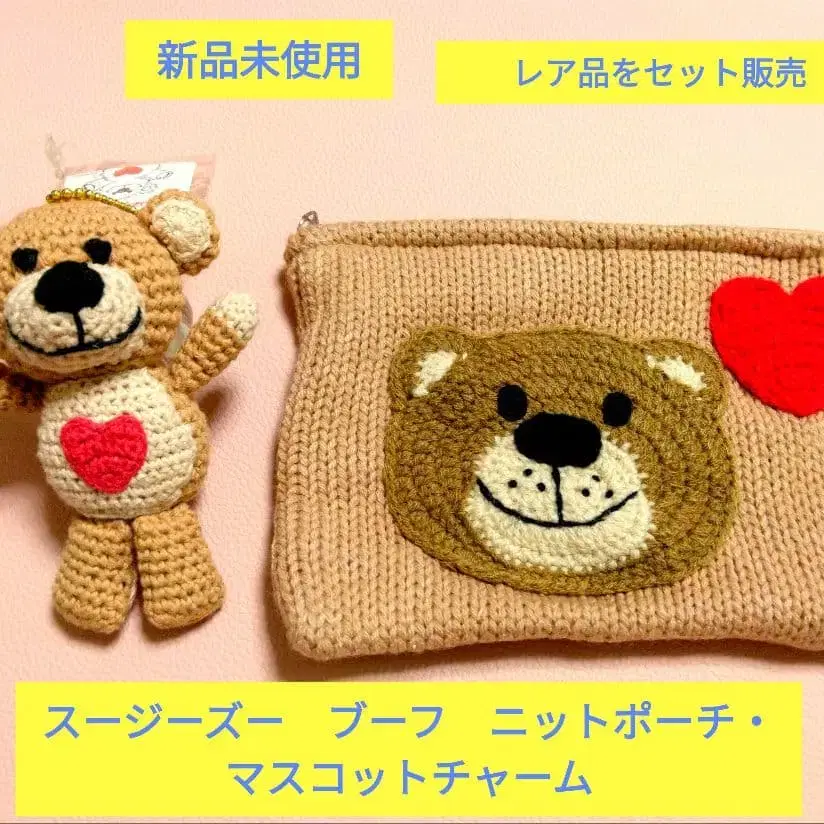 미사용 새상품 스누피 니트 소재 파우치 & 마스코트 참 세트
