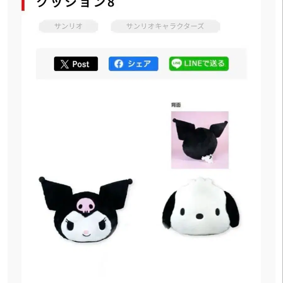 산리오 캐릭터즈 얼굴 빅 쿠션 쿠로미 & 포차코