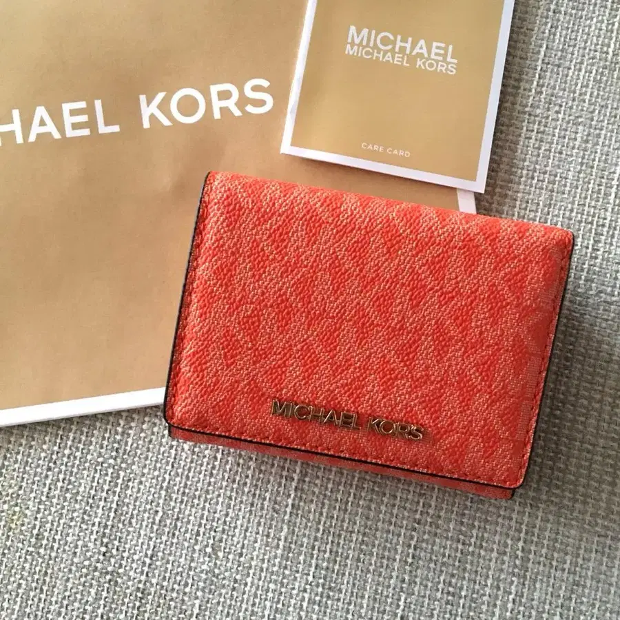 새상품 MICHEAL KORS 마이클코어스 3단 폴더형 지갑 오렌지