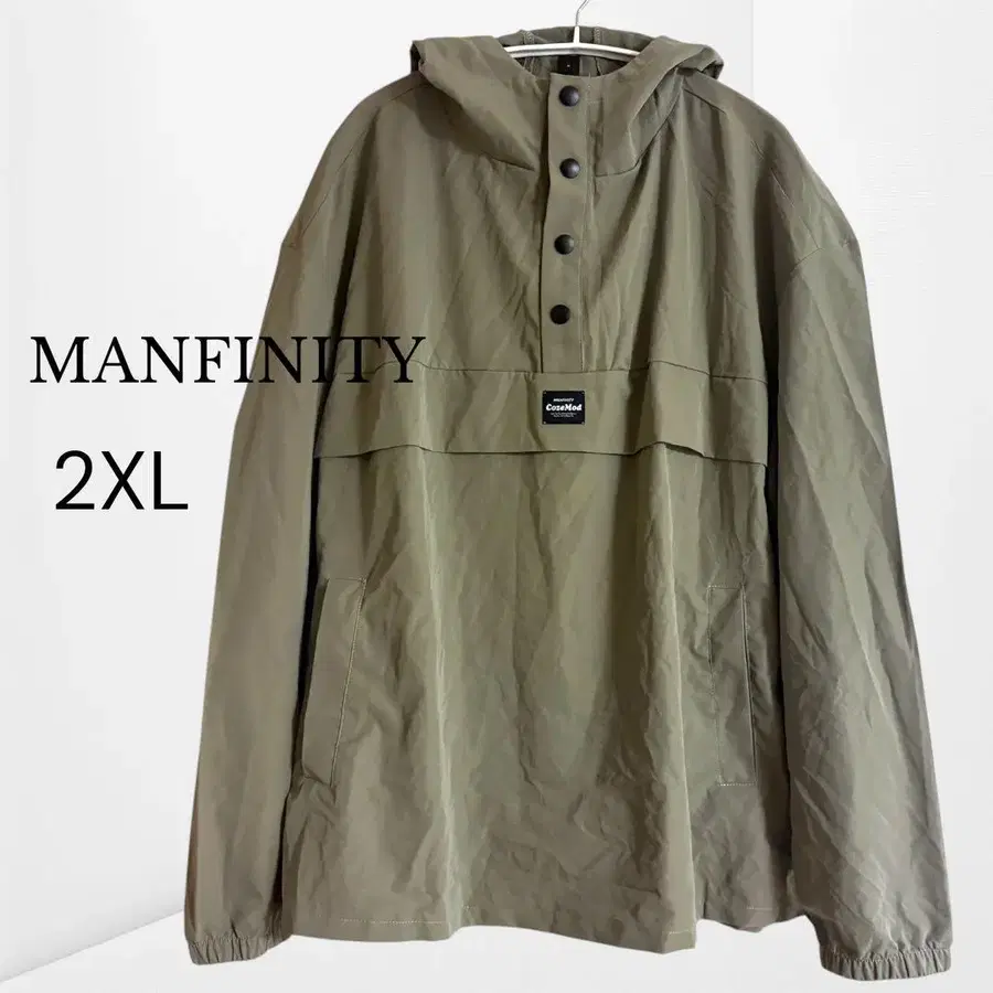 프론트 스냅 사양의 후드 부착 아노락 후드티.