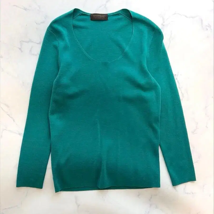 새상품급 TOMORROWLAND 울 100% V넥 그린 니트