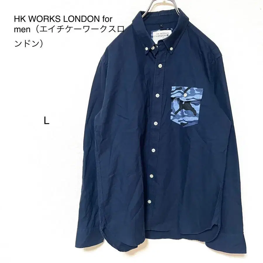[에이치케이웍스런던] 네이비 캐주얼 셔츠 포켓 카모플라쥬 L