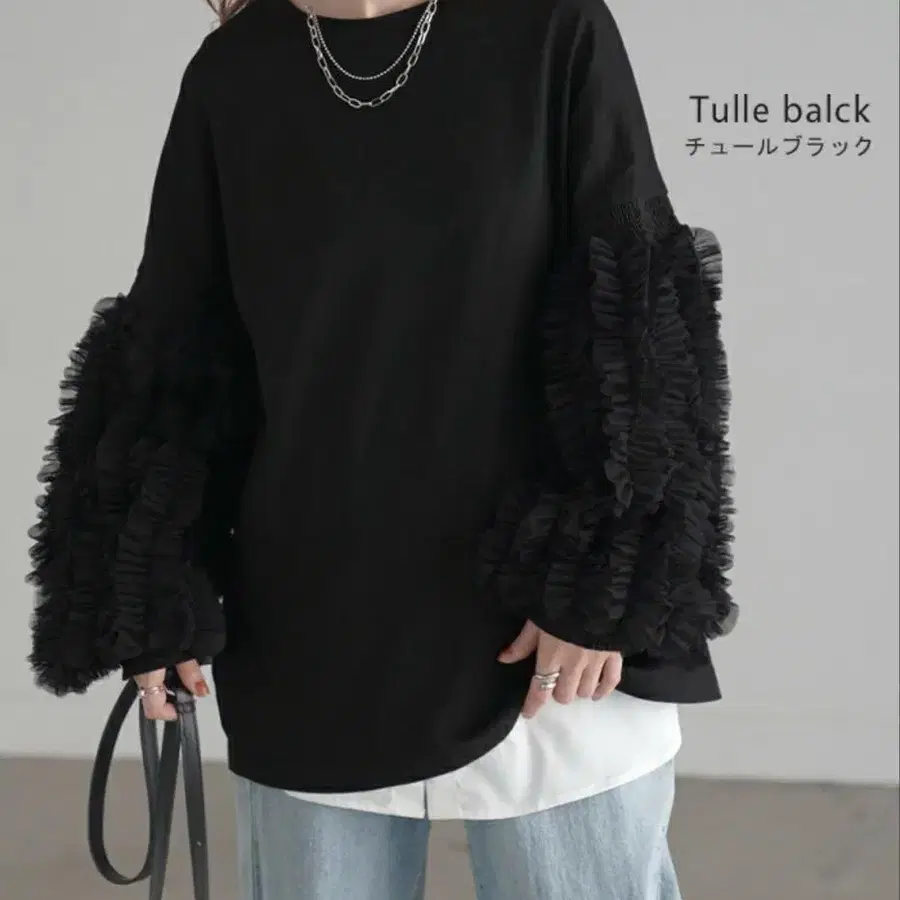 HUG.U 하그유 튤 소매 뽕긋 소매 티셔츠
