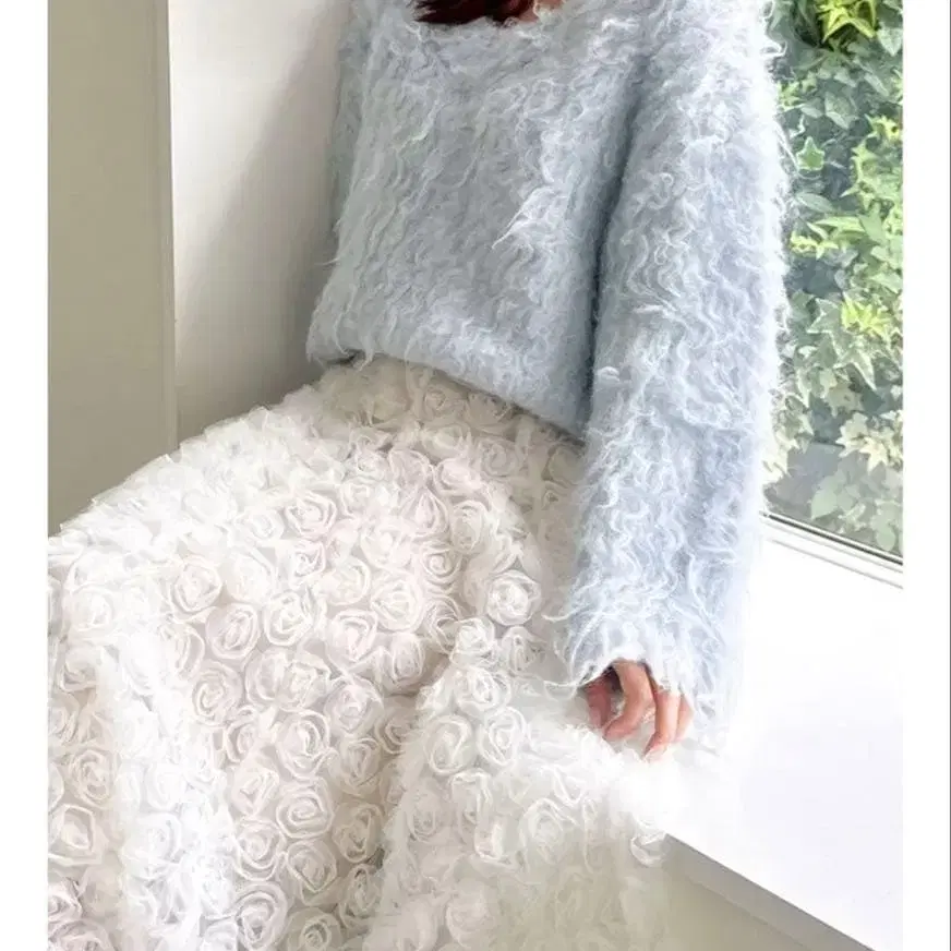 dazzlin 리플 컬 V넥 니트 블루
