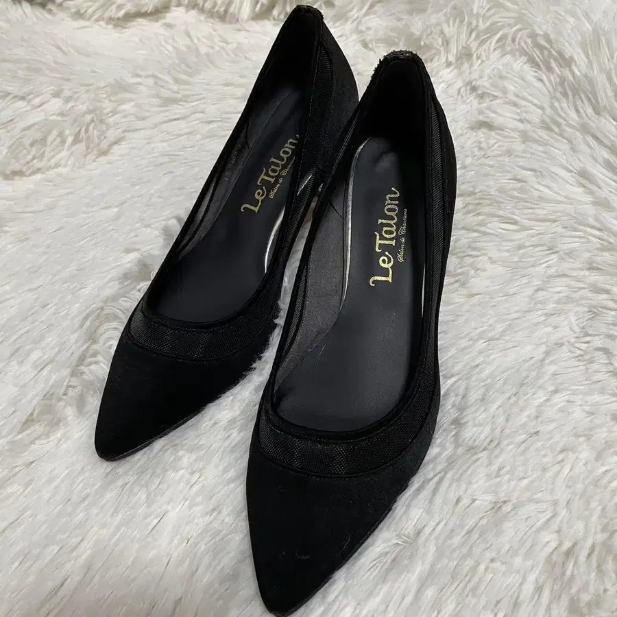 (새상품급) Le Talon 블랙 스틸레토 펌프스 메쉬 스웨이드