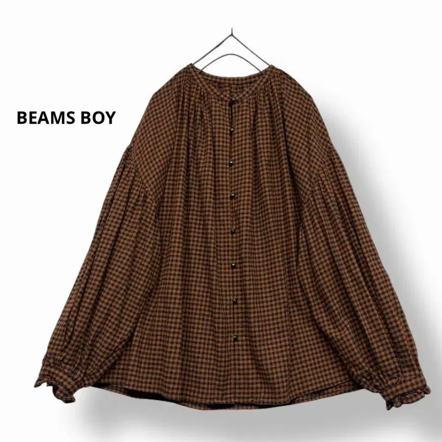정가 16,280엔 BEAMS BOY 체크 개더 스모크 깅엄 체크