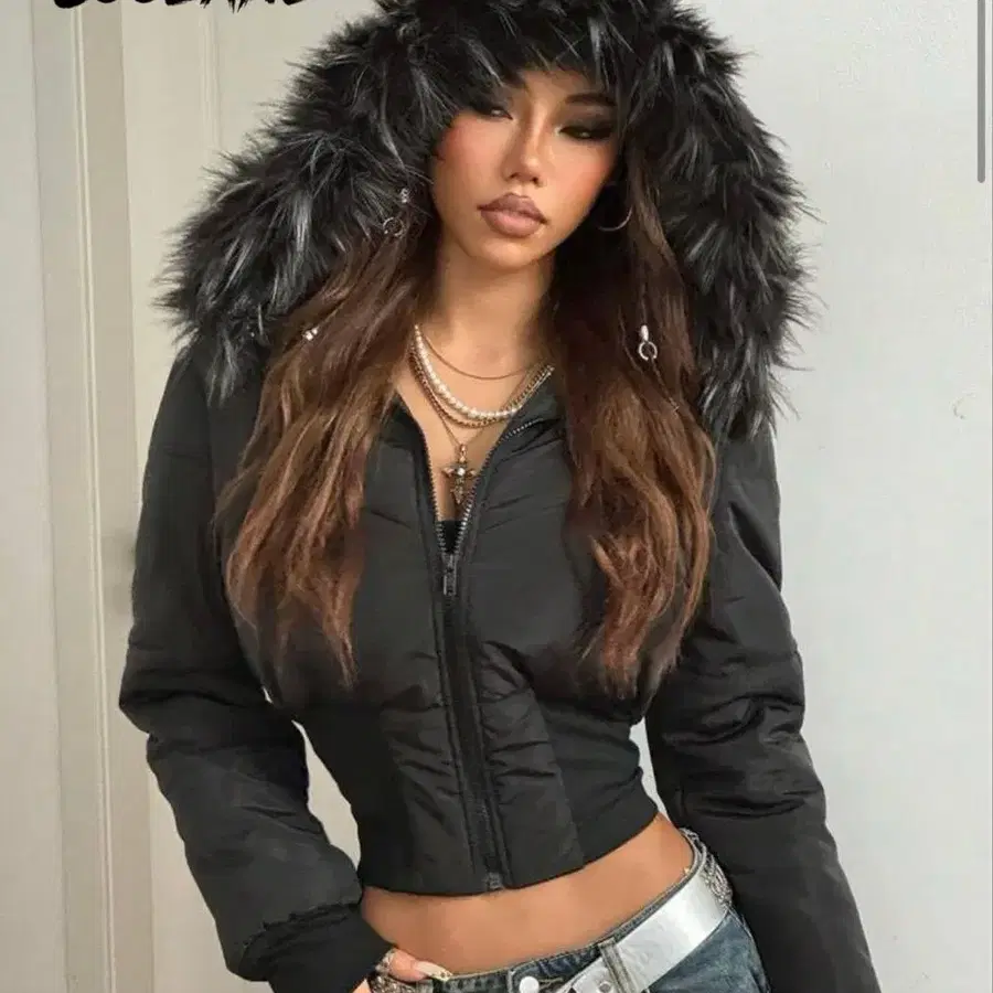 COOLANE 블랙 후드 부착 숏 다운 자켓