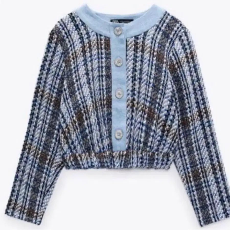 미사용 새상품 ZARA 자라 체크 무늬 크롭 니트 자켓풍 상의