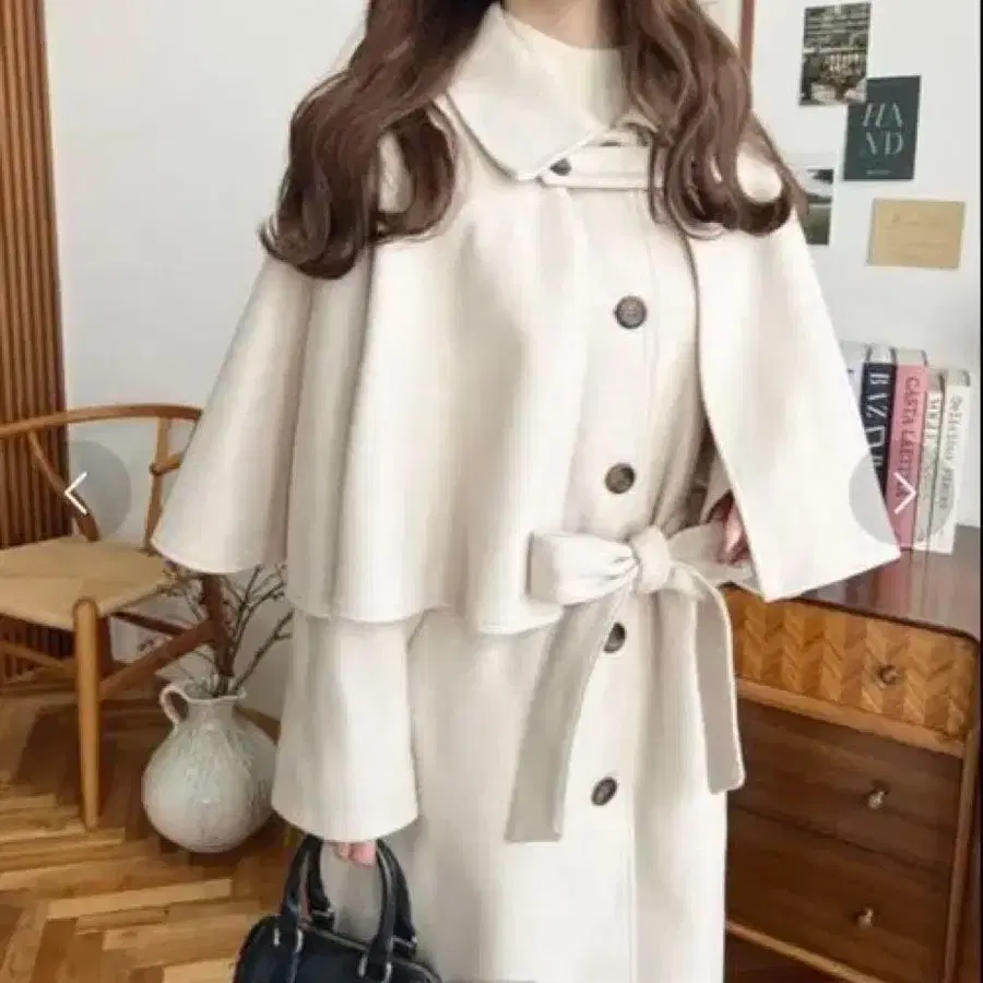 라이트 니트 멜톤 스텐 칼라 탈부착 가능 케이프 코트