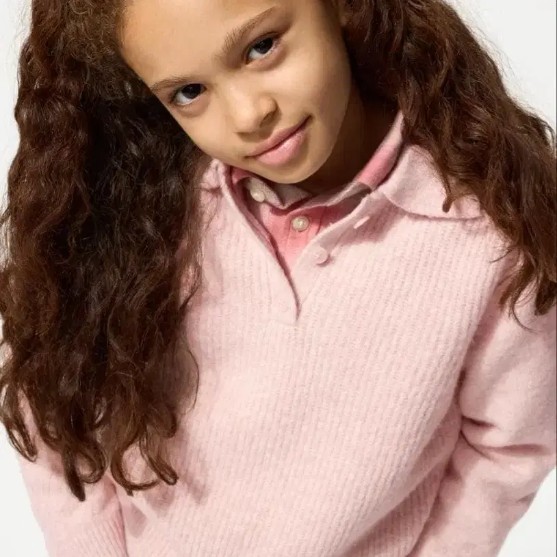 UNIQLO GIRLS 수플레 폴로 스웨터 핑크