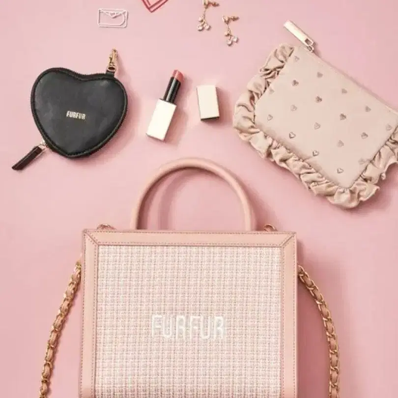 FURFUR 퍼퍼 트위드 로고 토트백 핑크