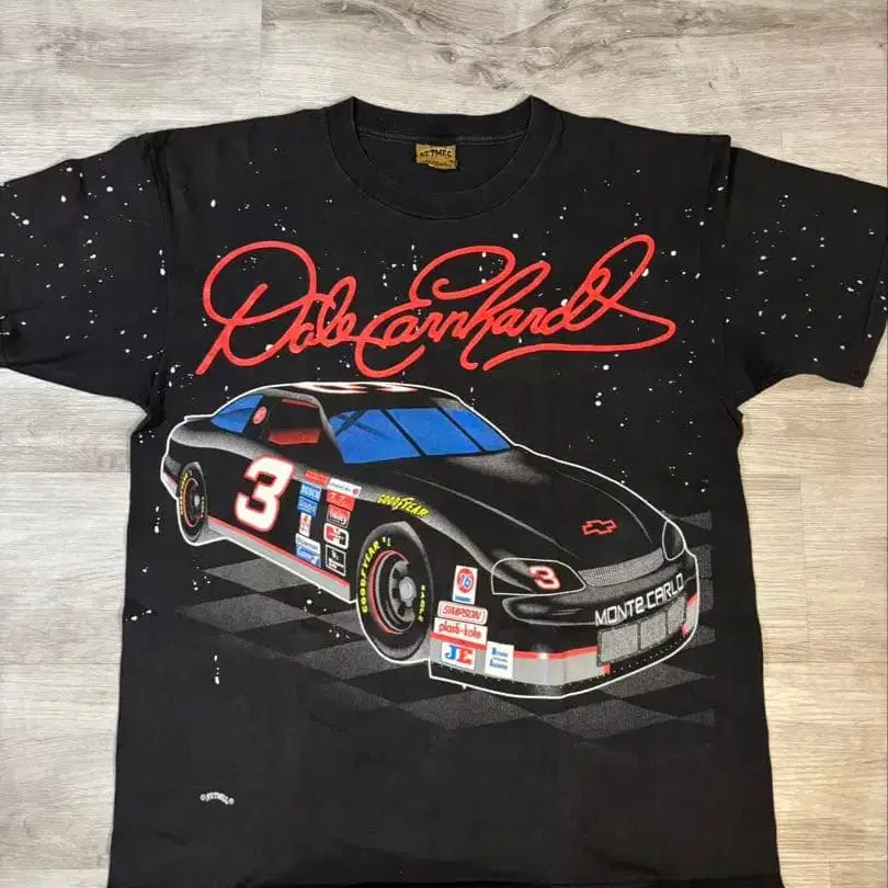 밤하늘의 별들을 연상시키는 스타 스플래터 (흩뿌려진) 패턴을 배경으로, 그의 상징인 시보레 몬테카를로가 자리 잡은 압도적인 프린트.