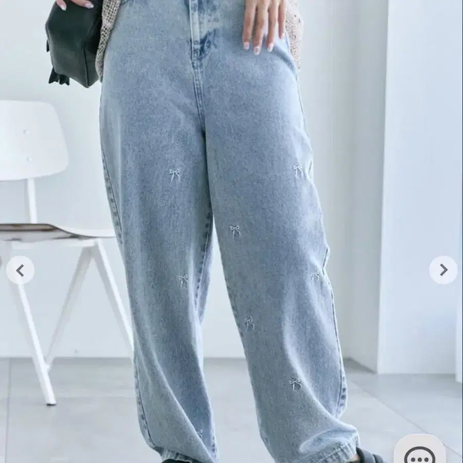ehka sopo 리본 자수 스트레이트 데님 팬츠