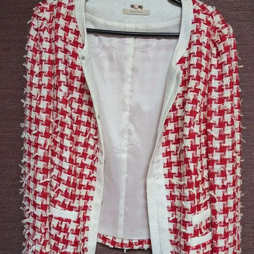 즉시 구매 Rose Tiara 트위드 노카라 자켓 빨흰