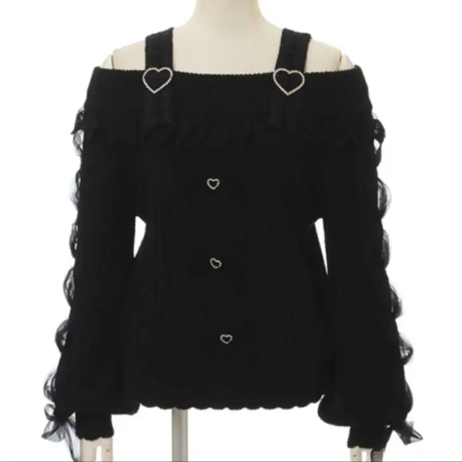 lizlisa 레이스업 슬리브 오프숄더 니트 블랙