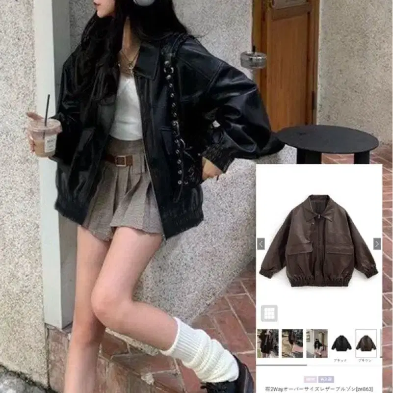 옷깃 2Way 오버 사이즈 가죽 블루종[ze863]